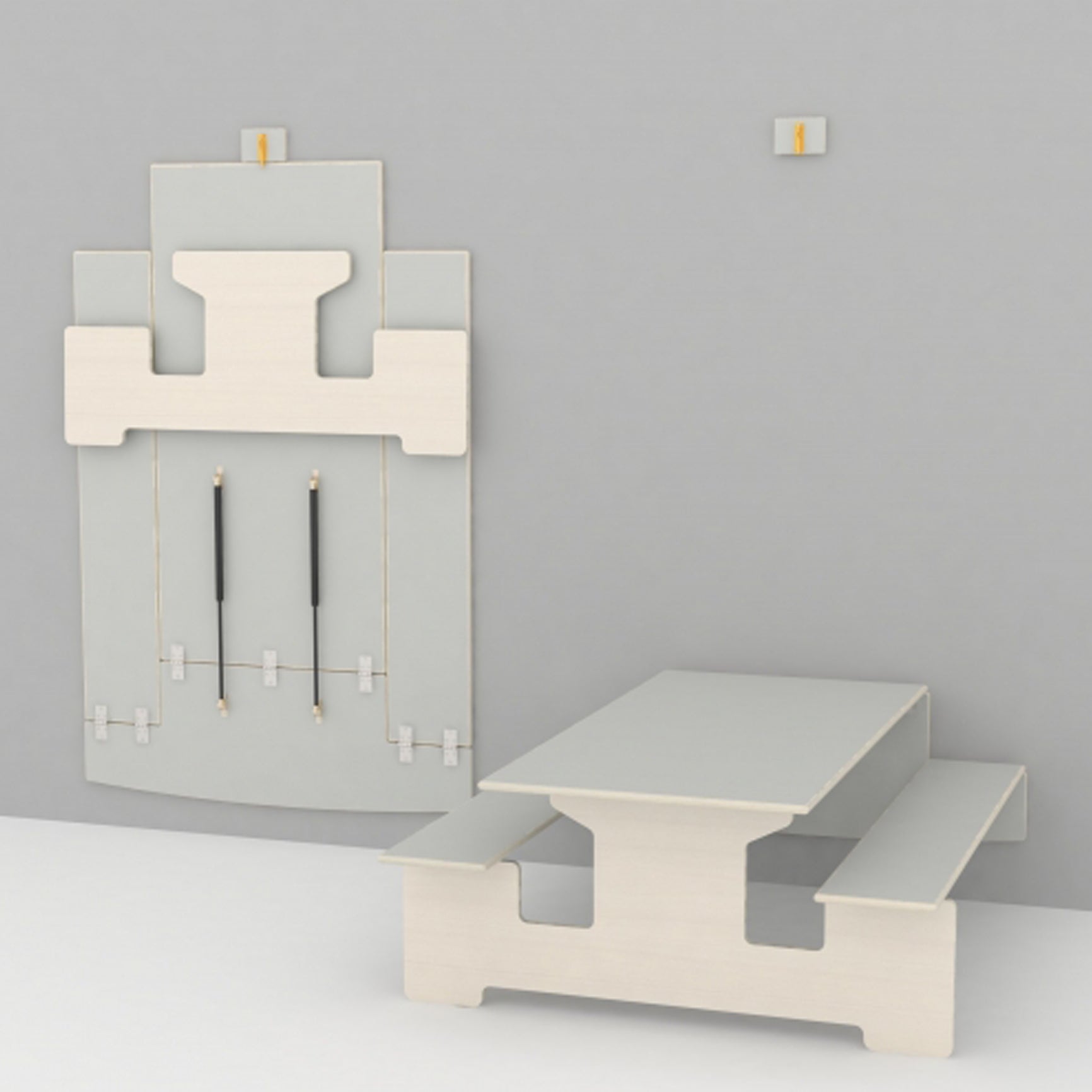 Unsere wandgehängten Tische sind speziell auf den Gebrauch in Kitas ausgelegt. Durch die Gasfedern ist das Ein- und Ausklappen der Tisch-Bank-Kombination spielend leicht.